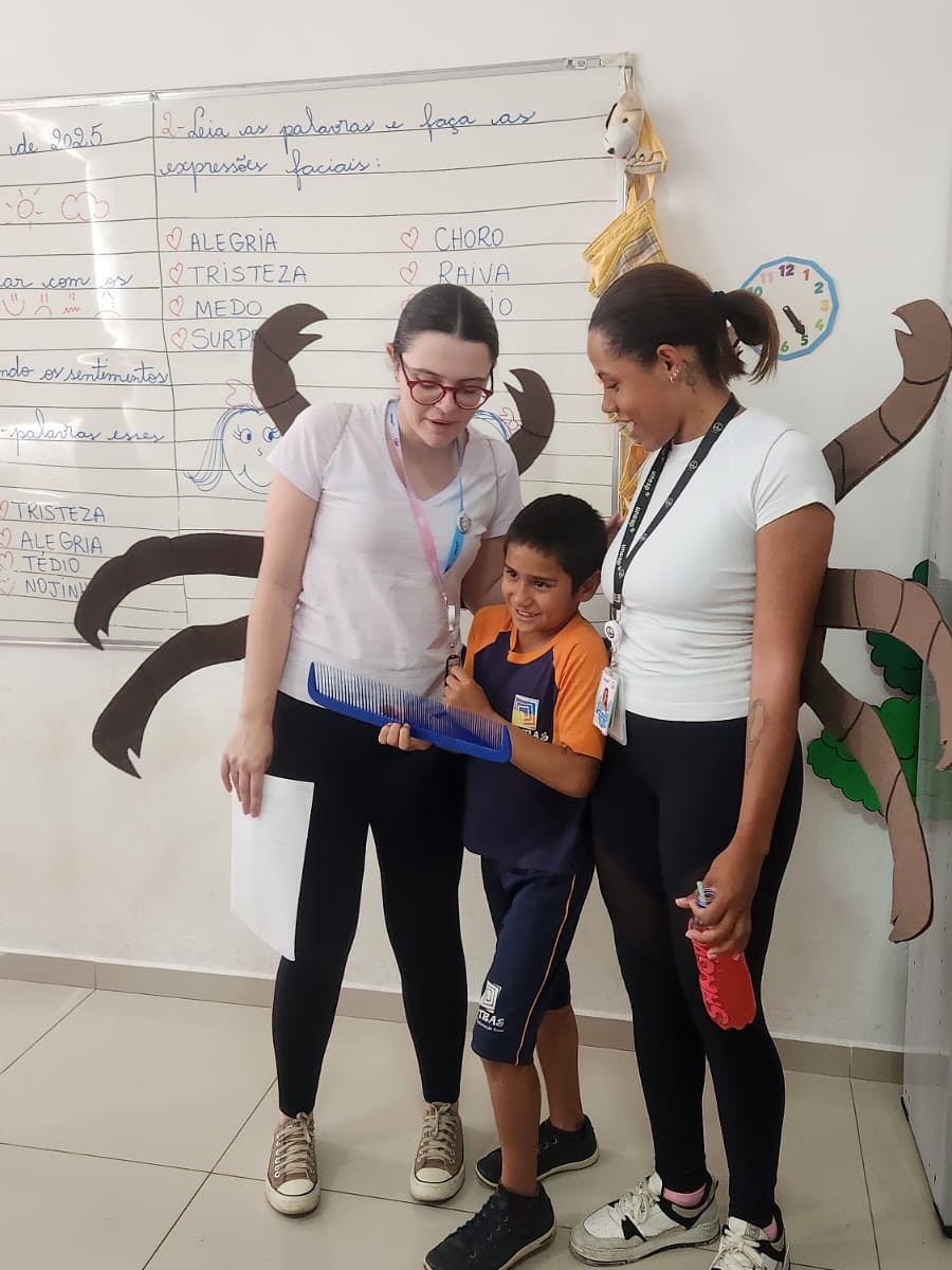 No dia 18/12 recebemos a visita de docentes e alunos da enfermagem da UNESP que fizeram uma atividade de prevenção e cuidados com relação ao piolho. As crianças puderam ver no microscópio, aprender como evitar os piolhos e realizar a higiene corretamente. Pudemos aprender bastante e colocar em prática todos os conhecimentos!