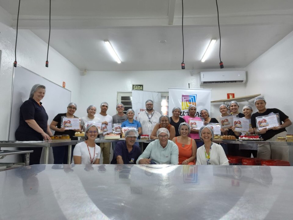 Na noite de 25/11 tivemos o encerramento do Curso de Bolos e Tortas, realizado aqui no NUTRAS. O curso aconteceu em parceria com a Bracell, Senai e Prefeitura Municipal de Botucatu. Os alunos aprenderam a fazer tortas doces e salgadas além de deliciosos bolos confeitados. As aulas aconteceram no período noturno aqui no